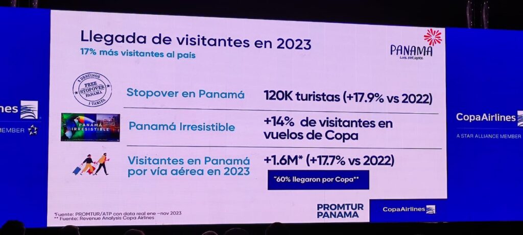En 2023, según información del Fondo de Promoción Turística (PROMTUR) y la Autoridad de Turismo de Panamá (ATP), se registró un ingreso de 1.6 millones de visitantes por vía aérea a Panamá, 17,7% más comparado con 2022. La Aerolínea estima que aproximadamente el 60% de estos llegaron a través de vuelos de Copa Airlines.
